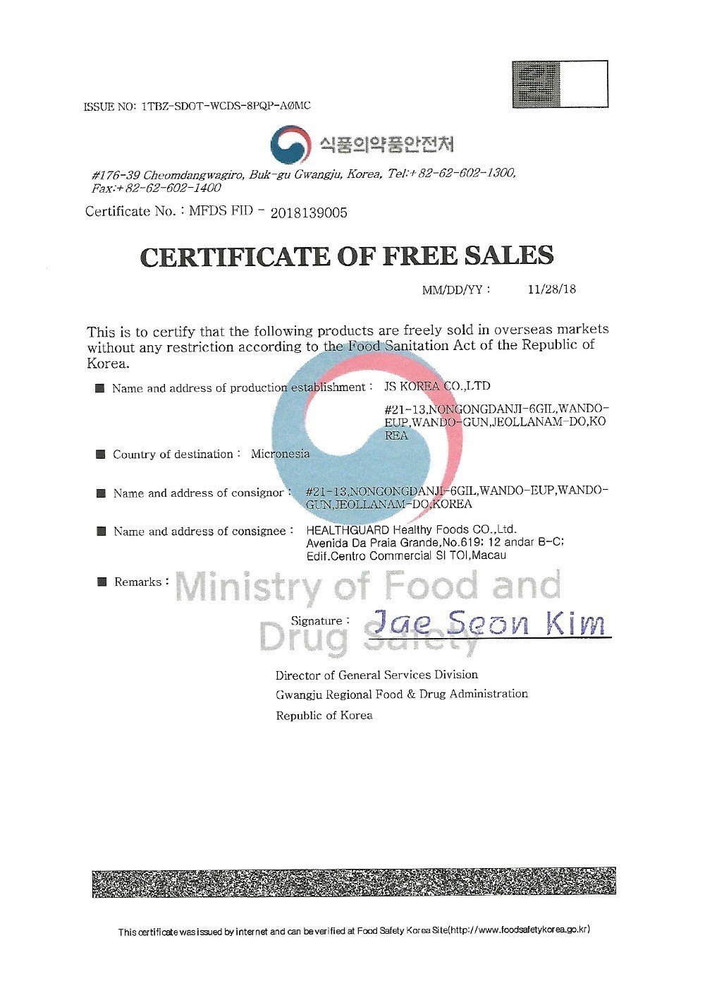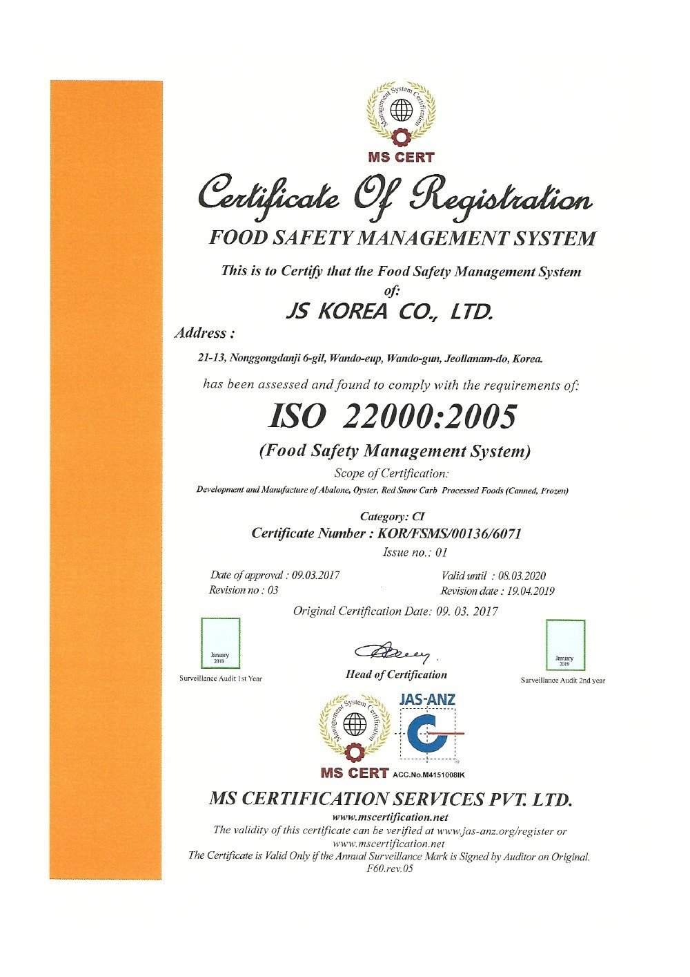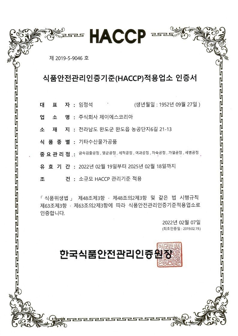 Giấy chứng nhận bào ngư uy tín và đạt tiêu chuẩn HACCP, ISO